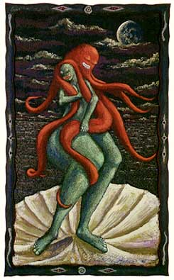 2回目の個展でタコが登場する。頭の上にタコが乗っているというのは、この作品の前に描いた人魚姫に始まる。だが現在描いているタコとはほど遠い。このヴィーナスのタコは現在とそう変わりなく、完成形に近い。