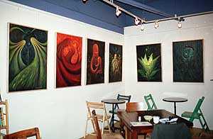 B1パネルの作品ばかりを10点展示。喫茶店での展示は初めてだったが、お茶を飲みながらゆっくり作品が観れて良いとの声が多かった。江古田という場所柄、集客的に厳しいものもあるが、一度来店した人は是非またここでやってくださいと言うほど、気に入って帰っていく。この店ならではかもしれない。