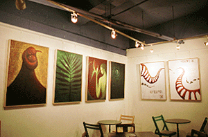 個展期間中に会場にてライブも行った。カウンターにまでお客が入るという大盛況ぶり。