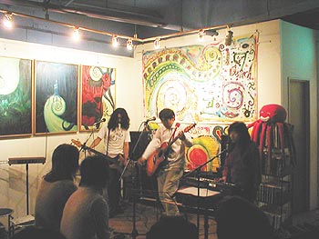 すっかり恒例となった個展会場でのライブ。今回もほぼ満席。
