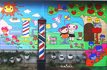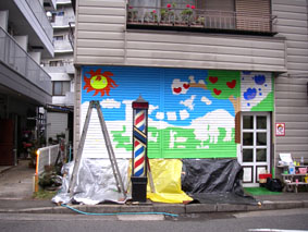 ということで、ビフォーアフター。なんの変哲もない床屋だったが、すっかり華やかになった。店主もご満悦の様子で、こちらとしても大変嬉しい限りである。
