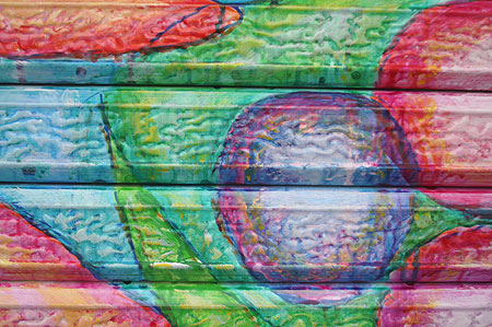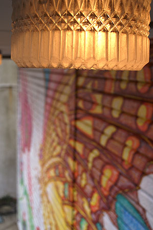 白塗りは手伝ったものの、結局aqui1人で制作。まぁ手伝うにせよ、彼の作風に合う塗り方は自分には正直難しいと思う。よく見ると何層にも色が塗り重ねられ、微妙な味わいを出している。シャッターペイントに向いているとは言えないが逆に新鮮だ。