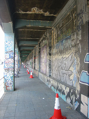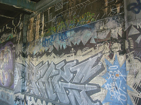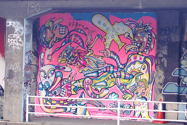 ということで、ビフォーアフター。いまいちパッとしないグラフィティであったが、一気に華やかになった。この時はまだ前半が終わったところだったが、明らかに一番目立っていたと思う。今ごろはすでに他の作品も全て完成しているはずなので、暇があったらまた見に行ってみよう。